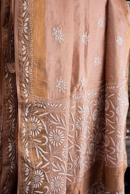 Brown Tussar Silk Chikankari