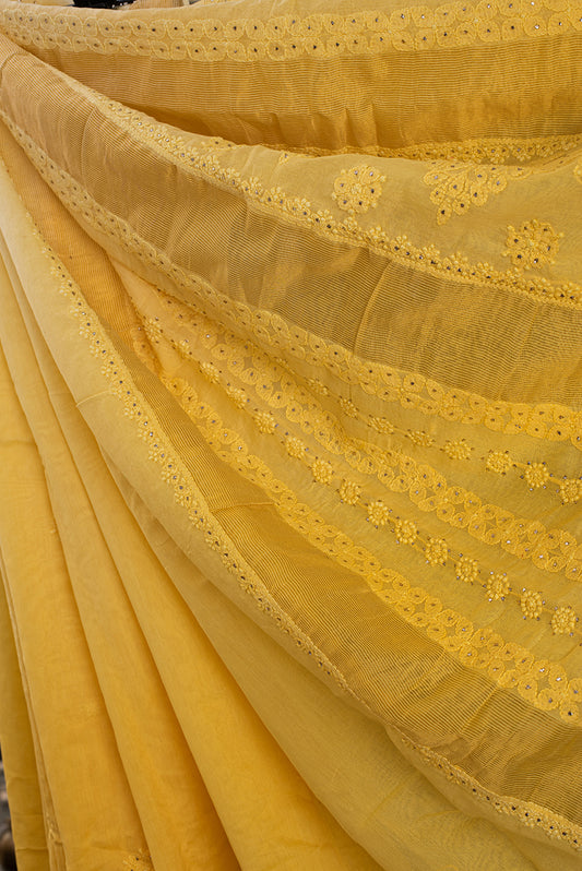 Sunlit Yellow Chanderi Chikankari & Mukaish